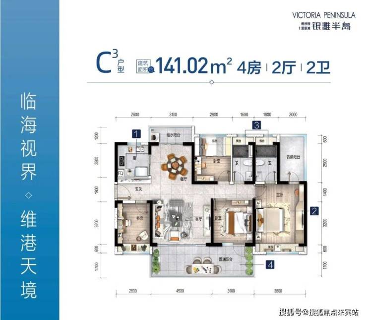 为商业精英青年打造:建面约100㎡瞰海户型