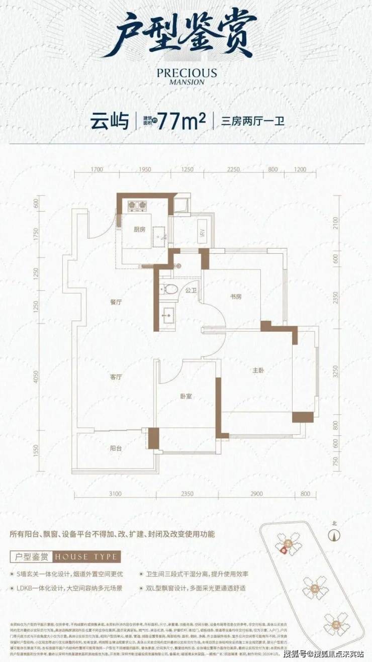 龙华观澜,玖珑瑧境·新玥(备案名:福城境未来家园)计划将在2026年3月份取证入市,本次首推1栋1单元,共167套房源,面积有77㎡的3房1卫,87-94㎡的3房2卫,111㎡的4房2卫户型,全南朝向,也是观澜第二个新规建设的新盘,得房率高达98-105%。