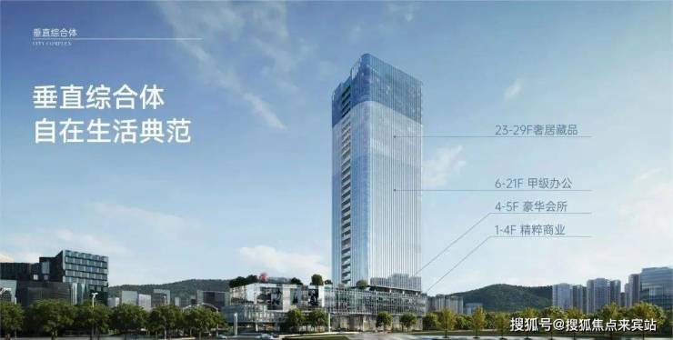 集合云端居住、奢雅会所、精粹商业、甲级办公为一体的垂直综合体,生活&休闲、社交&事业,悦然相逢,自在切换。
