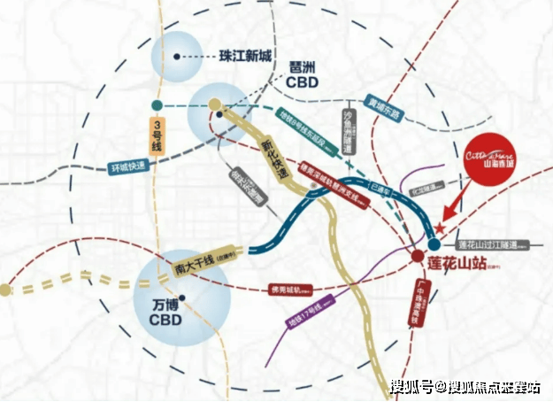 【1座莲花枢纽 双地铁双城轨】🚄8号线东延段:7站到万胜围(规划中)17号线:5站番禺广场(规划中)佛莞城轨:3站万博,4站广州南(预计2022年底通车)穗莞深琶洲支线:3站琶洲(在建)