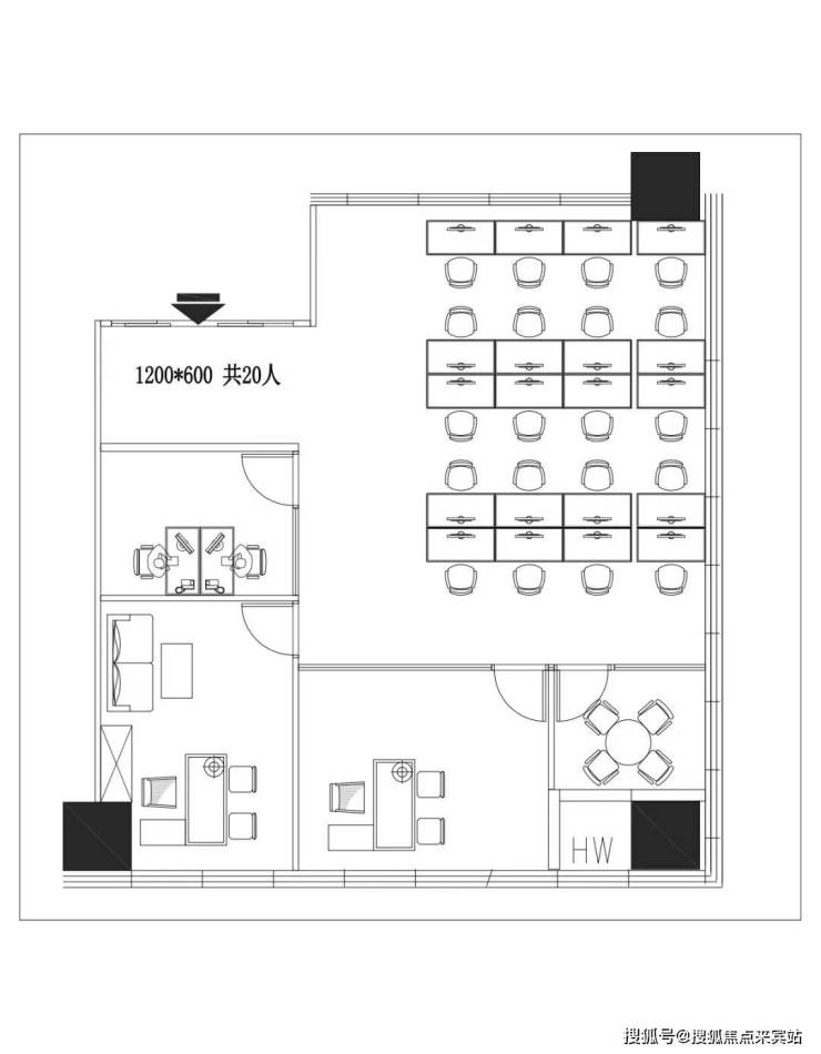 💡 格 局:4+1 朝东南北三面采光 公区可坐20人