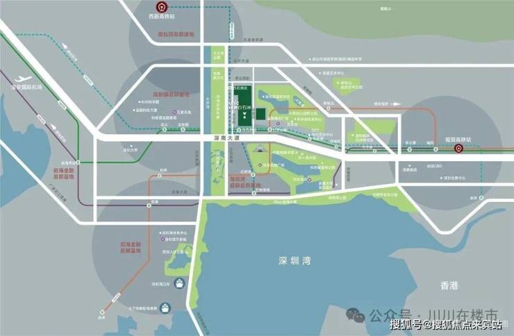 在伦敦、纽约这样的超级城市,其城市主轴的黄金分割点上均屹立着城市超级影响力的项目,如伦敦金丝雀码头、纽约中央公园,而深圳的发展主轴深南大道从罗湖中心到前海中心,绿景白石洲正处于黄金分割点之上。