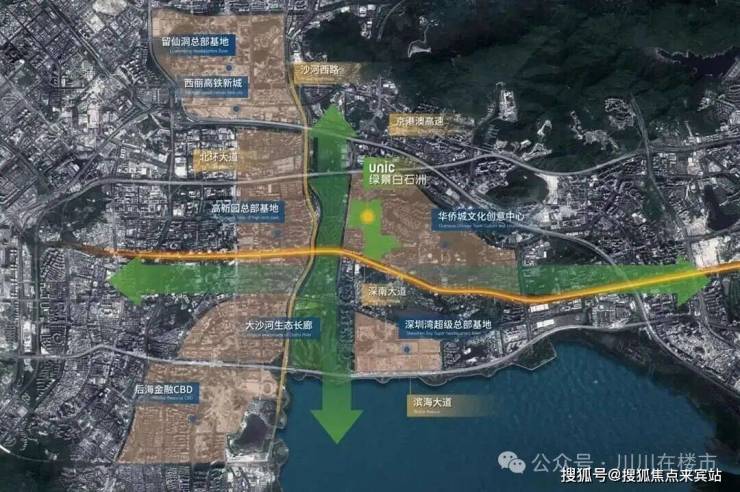 绿景白石洲位于深圳核心位置南山区的华侨城片区,深圳城市发展主轴——深南大道与大沙河创新走廊十字交汇点,依托华侨城人文艺术城区,链接后海总部基地、深圳湾超级总部基地、留仙洞总部基地、高新园总部基地四大总部基地。