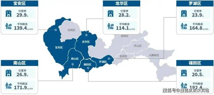 • 2024年第四季度深圳各商务区空置率整体呈下降态势,但福田区空置率较深圳其他区而言最低,平均租金最高。核心区的核心资产价格始终保持坚挺。