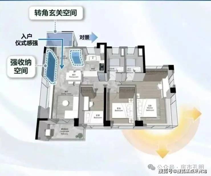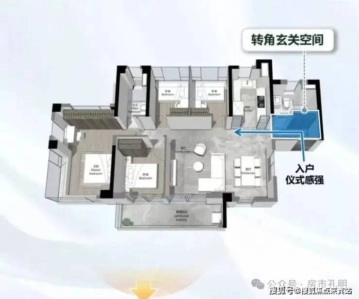 项目主打建面88-120㎡的三至四房户型,适合不同家庭的居住需求。户型设计遵循新规后的高实用率标准,阳台占比达到20%。户型内配有宽敞的客厅和卧室,同时还提供270°大飘窗设计,确保每户都能享受最佳的采光和视野。户型空间合理,功能分区明确,非常适合刚需和改善型家庭。