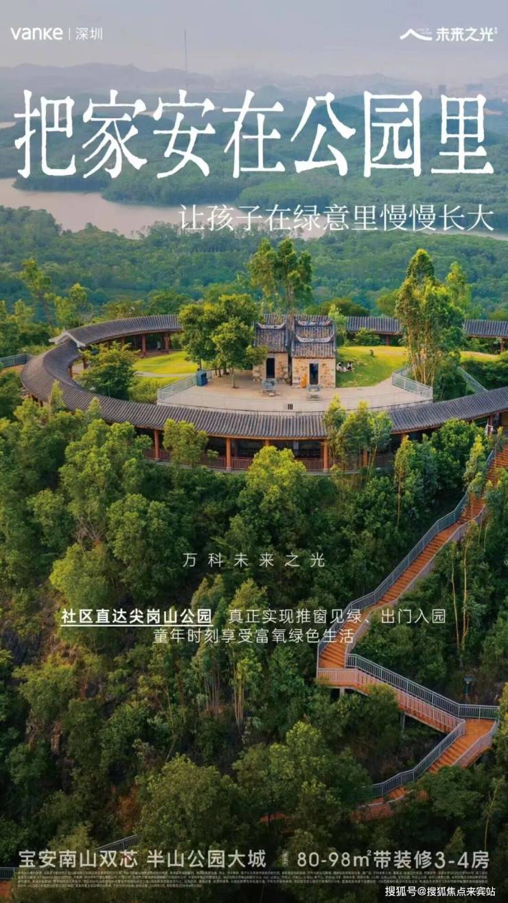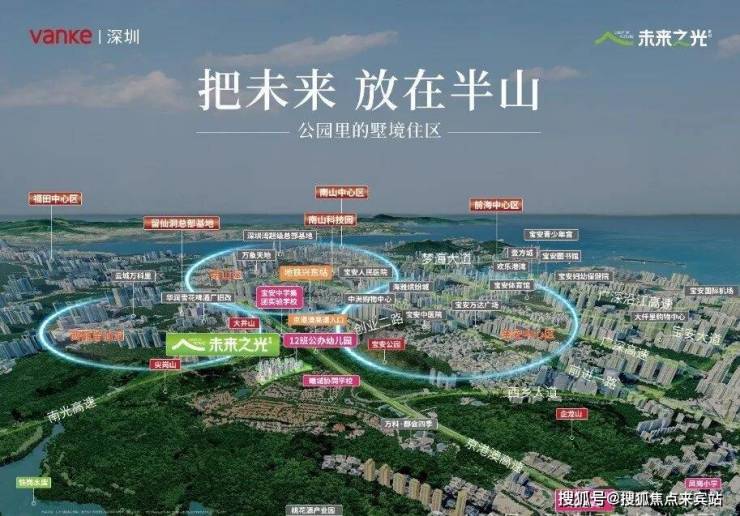 万科未来之光,由万科集团与深圳安居集团联合打造,坐落于宝安区新安街道尖岗山豪宅区核心,地处宝安中心区、南山科技园、西丽留仙洞三大板块交汇处,总建面约30万㎡,容积率仅2.91,是尖岗山片区罕见的低密生态改善大盘。项目分4个地块开发,由23栋10-23层小高层组成,依托尖岗山豪宅基因与双区辐射红利,成为兼顾刚需与改善的高性价比标杆,深受南山跨区通勤族与本地精英家庭青睐。