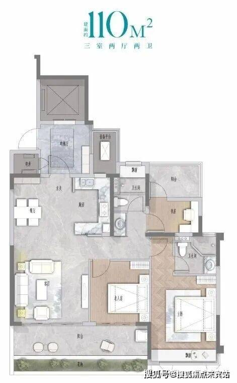 建面约127㎡舒适三房:空间布局合理,兼顾度假与生活