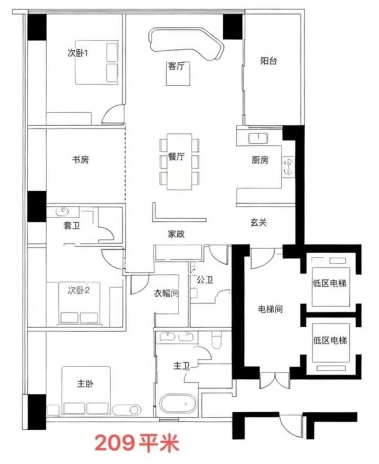 产品极致 - 纯大平层社区,209㎡起四房三卫