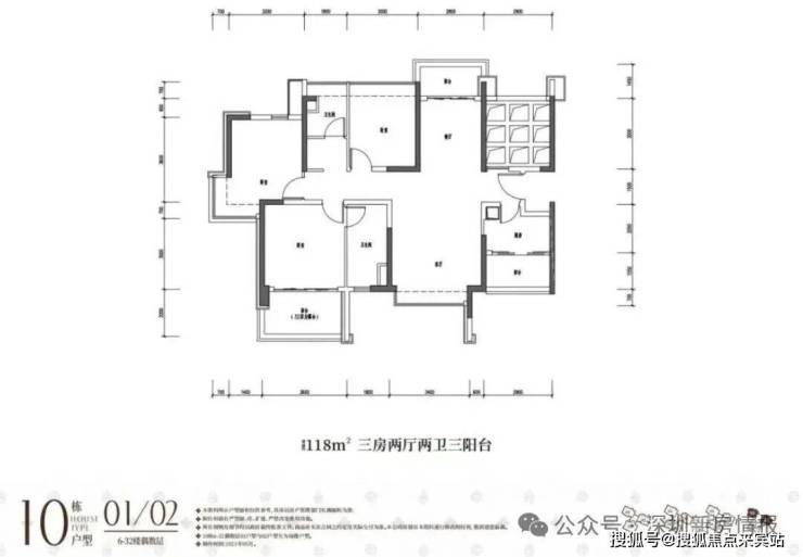 三期项目由4栋32层高层住宅组成,总规划465户,梯户比为2梯3户或2梯4户,保证了居民的出行便利和私密性。