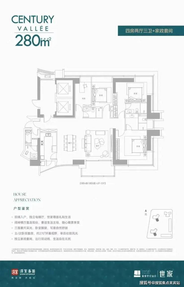 深业世纪山谷·世家在售约233/280/386㎡景观纯粹大平层住宅产品,约420-1080m²云端复式,3.5米奢阔层高、户户瞰景观非常震撼,中央公园的葱郁静谧、城市CBD的繁华璀璨,全部近在眼前。