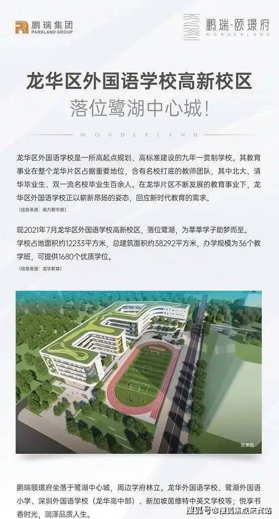 项目北侧有一教育用地,据悉规划的是一个九年制45班学校,除此之外项目1.5公里范围内覆盖有龙华区外国语学校、深圳外国语龙华高中部、宝文学校、厚德书院等学校,同时美中学校及广东实验中学深圳学校(在建)、深圳外国语湾区学校等也都在项目2公里范围内。