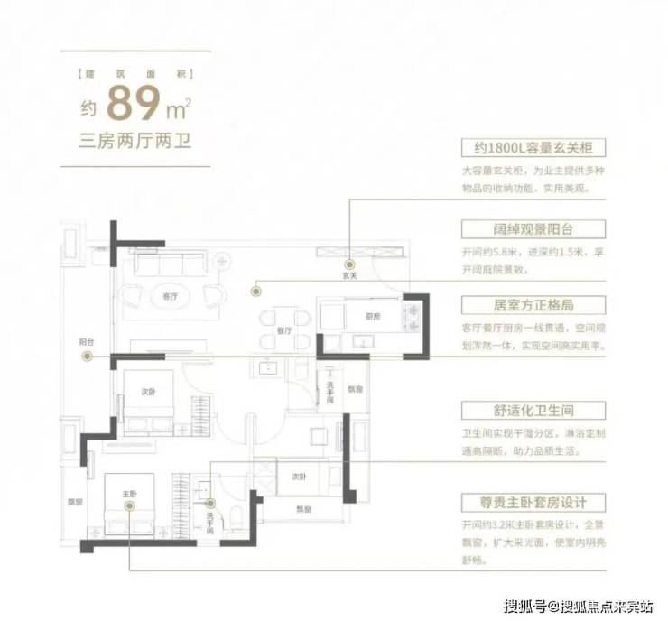 全楼栋东南朝向,MAX级奢阔观景阳台(79㎡户型无此类阳台)