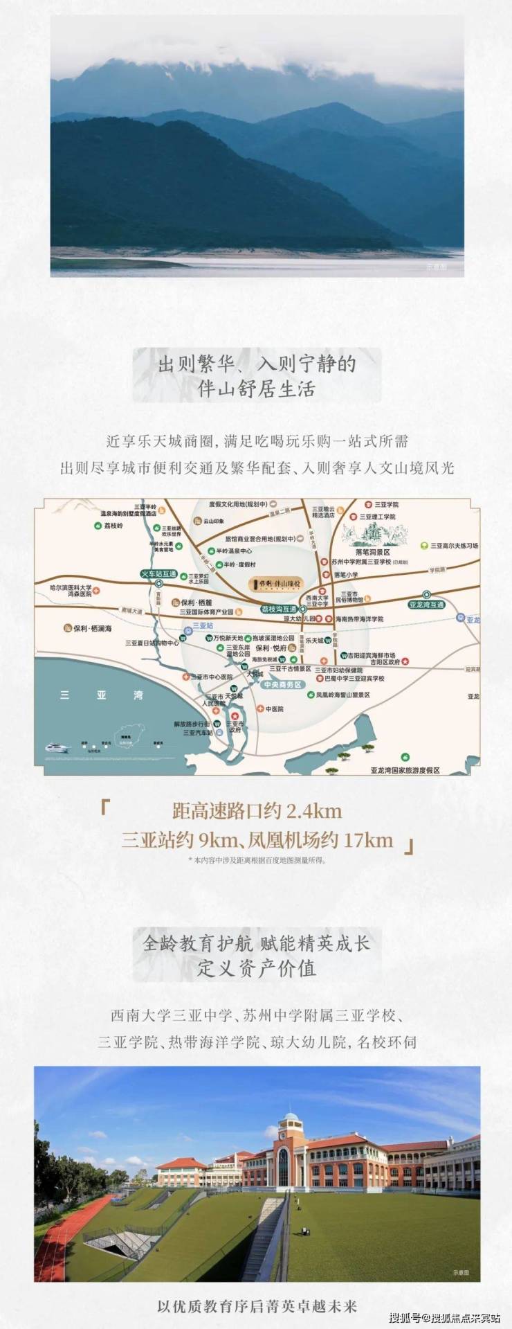 保利·伴山瑧悦紧邻主城荔枝沟、迎宾路、火车站等繁华商圈,项目北向为城市主干道落笔洞路,可轻松通达三亚全城;紧邻高速路口、高铁站,可速达机场。出则尽享城市便利交通及繁华配套、入则奢享人文山境风光,闹中取静,离尘不离城的度假胜境。