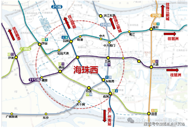 交通上:海珠西涵盖了2号线、8号线、10号线、11号线、广佛线地铁线,而且毫不夸张的说,把11号线从头坐到尾广州一日游也就差不多了。