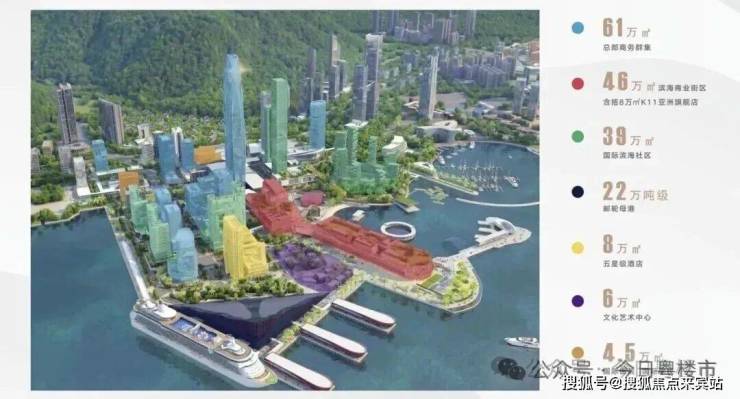 鼎级配套:约170万m²未来之城(约61万m²商务集群,含约380m超高塔尖商务总部+约46万m²滨海商业,含K11亚洲旗舰商业体、D-park等+约39万m²国际滨海社区+6万m²文化艺术中心+约8万m²五星级酒店+约4.5万m²太子湾国际学校、国际医院),一湾三坊城中城,滨海生活时代领地。