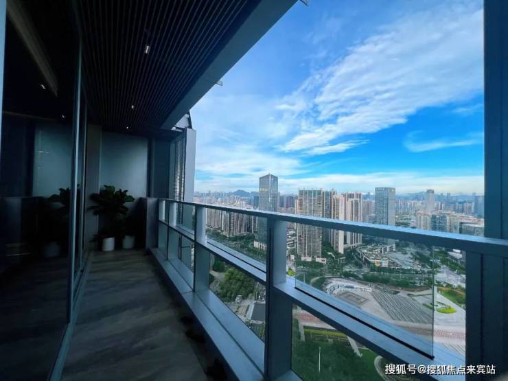 宽幅幕墙,约2米宽的超白玻璃幕墙,安全尺度好,大尺寸的幕墙能带来更好观景体验,配合270°环幕般全景效果,将前海湾尽收眼底。