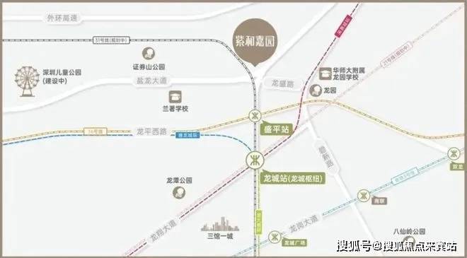 在干道交通上,项目占据城市主干道龙城大道,出门即上盐龙大道快速路,0红绿灯快速接驳水官、机荷等高速,迅达龙岗、罗湖、福田、南山中芯区。同时,通过外环高速,从项目出发一小时内即可到达宝安机场。在轨道交通上,项目近邻16号线盛平站,同时周边还规划了地铁31号线:另外,在建的龙城枢纽站规划为地铁21号线。深惠城际线、塘龙城际线、地铁31号线四线交汇,届时项目可于此快速换乘通达全城。