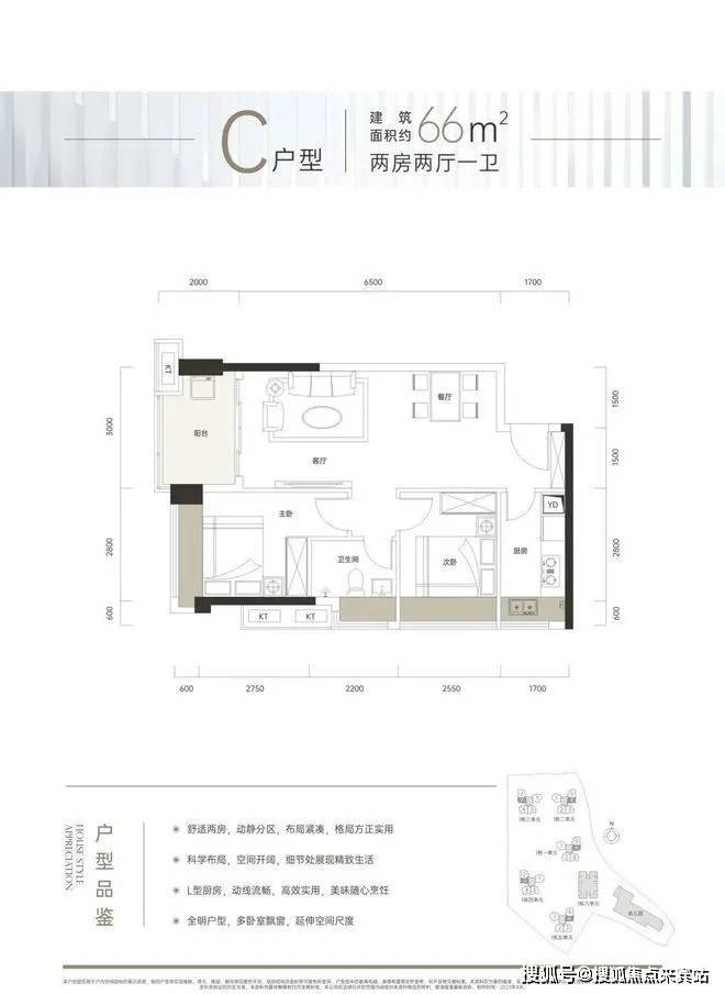 66㎡的2房2厅1卫,折后总价约140万/套起,折后单价约2.15万/㎡。