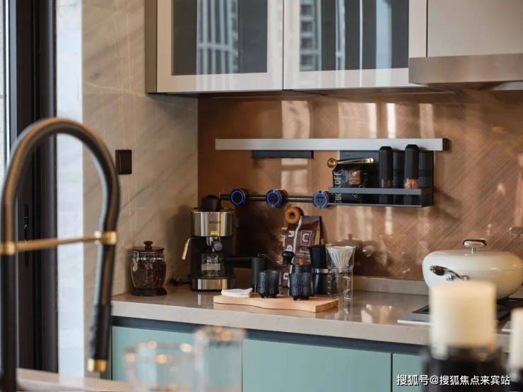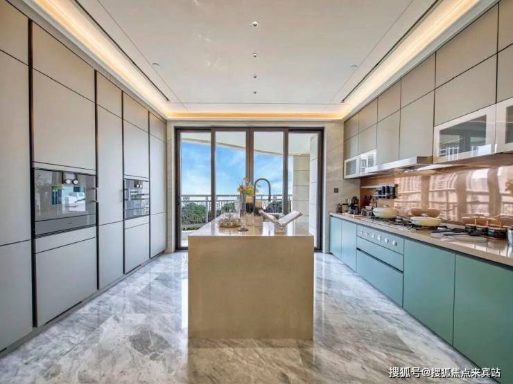 🌟墙壁使用香雪灰奢石,玻璃厨房门用搭配金属外框,开阔明朗;