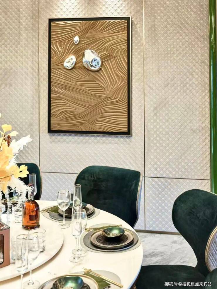 ✨鳄鱼皮编织纹墙布背景搭配鎏金翡翠奢石,通透飘逸,奢贵内敛。