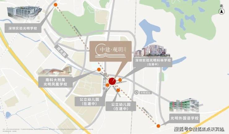 项目旁有一所6班公立幼儿园、毗邻一所公立幼儿园,家门口即深圳实验光明科林学校(在建中),周边南方科技大学附属光明凤凰学校、光明区外国语学校三大名校环绕,为孩子成长保驾护航。
