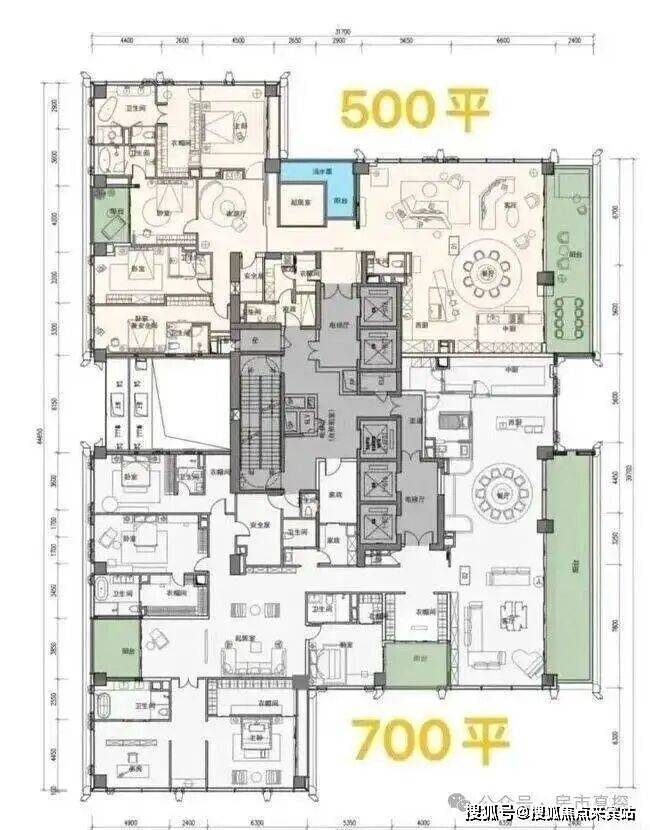 超高区(58层起,200米以上):约500-700㎡顶级大平层。