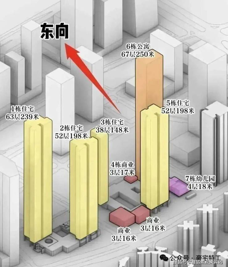 容积率7.59,限高250米,5栋超高层(1栋公寓+4栋住宅)。