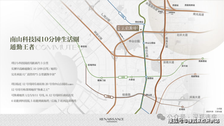 项目距离12号线同乐站直线距离约300米,周边还有在建的15号线同乐关站,贯穿前海、后海、南山、宝安等重要片区,环经济发展核心区域。