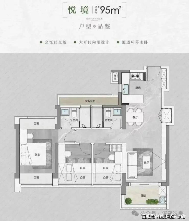 【户型面积】建面约90-95-105-143㎡3-4房