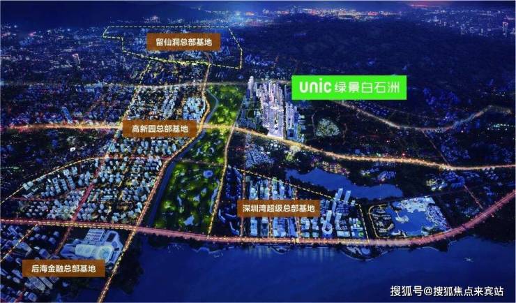 位于深圳南山区的核心地段华侨城片区位,集 科技创新、企业总部、绿色生态等多元价值的 城市中轴地段,串联了深圳湾超级总部基地、 高新园总部基地、留仙洞总部基地、后海金融 CBD四大总部基地。其中腾讯、小米、阿里、 百度、大疆等行业领军企业总部汇聚于此,吸 纳高精尖人才超75万人,是深圳的价值之核、 未来人脉价值高地。