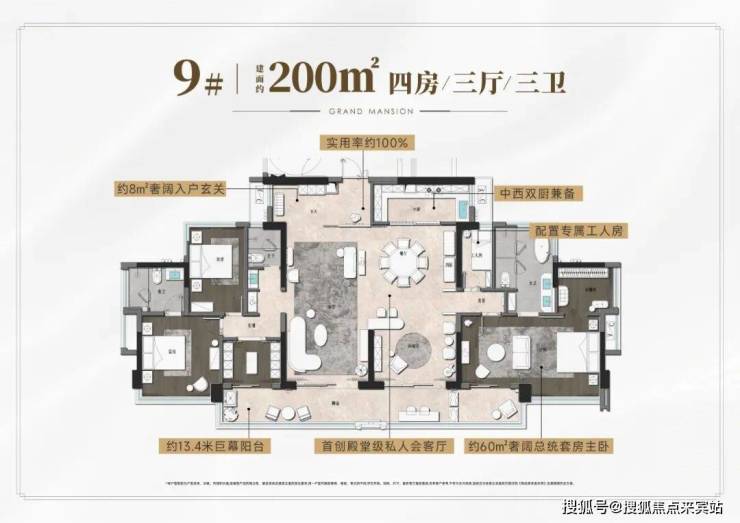 建面约200㎡大平层,堪称“终极豪宅”的王牌作品,完全0过道,实用率100%,比深圳湾1号的大平层还有高(普遍只有80%-85%),也更能感受到大开大合的大宅气场。