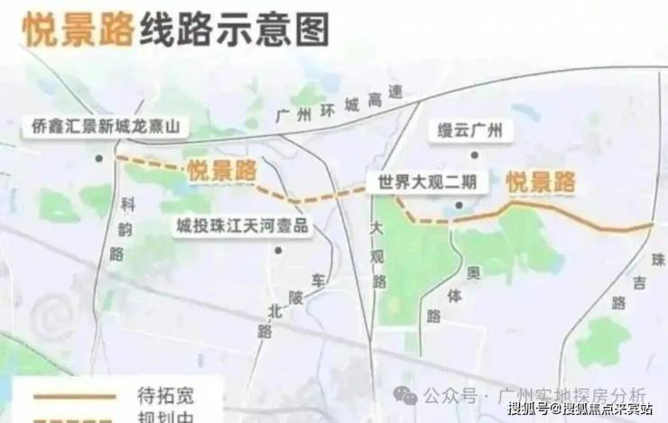 自驾通过悦景路出行,东接珠吉路,西连奥体路从珠吉路和奥体路可以连接广园快速、大观南路等主干道。悦景路双向四车道扩建工程已经动工了,预计今年12月建成。