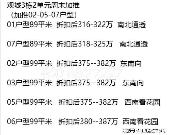 折后均价4.14万/㎡,折后总价区间336-520万,折后单价区间3.82-4.52万/㎡