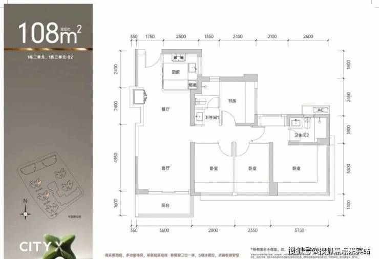 02户型108平4房,东南,单价4.37~4.52万/㎡,475-491万;