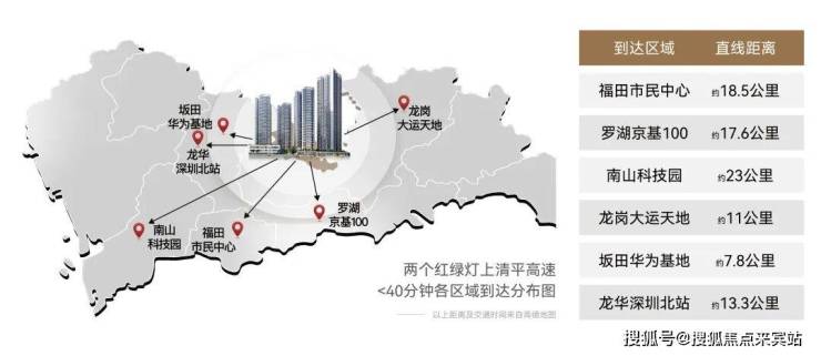 深圳远洋城,家门口地铁17号线山厦站(规划),两个红绿灯(约1.7km)上清平高速,叠加地铁10号线、17/18号线(规划),一站到平湖枢纽,多维立体交通,约40分钟到达深圳各区中心。