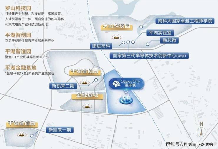 平湖北部新城已建成罗山科技园、平湖智造园、平湖智创园,平湖金融基地,重点发展芯片光刻机、半导体、ICT等新兴产业,打造面向全球的半导体与集成电路产业科技创新高地。