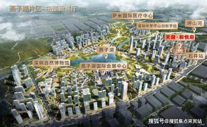 2021年深圳两会提及加快建设9大区域,包括燕子湖新区,坪山十四五提出“1+7+N”重点片区格局,1为燕子湖,市级区级双重背书,高标准打造定位东部城市新客厅。天健和悦府