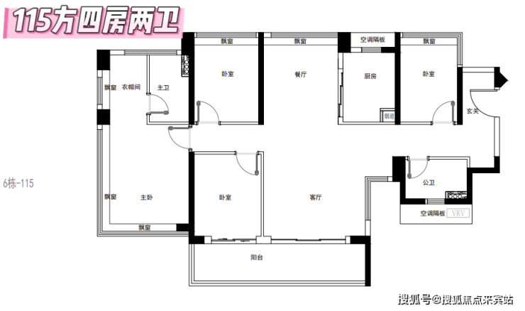115㎡四房两厅两卫:南北对流,带入户玄关,低层北向朝客运站,高层朝马路,噪音问题需留意。