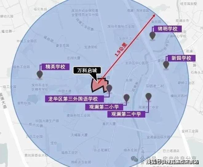 万科启城家园自带幼儿园学校、毗邻龙华区第三外国语九年制学校,另外万科启城家园观澜二中、观澜二小距离万科启城家园也都不远。万科启城家园1.5公里范围内还分布有锦明学校、新园学校、精英学校等。