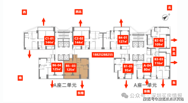梯户比:1单元4梯5户,2单元4梯4户