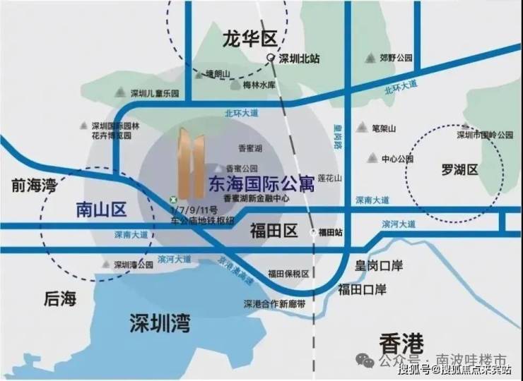 【多维交通 地铁上盖物业】城市主干道深南大道之上。1、7、9、11号线四条地铁交汇到站即到家,广深港高铁客运专线实现14分钟深港高铁生活,毗邻京港澳高速入口,20分钟可达深圳可达深圳机场。