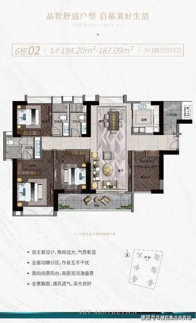 南沙罕见百万方大型HOPSCA城市综合体,揽集商务写字楼、Shopping Mall、酒店式公寓、社区综合市场、休闲运动设施、儿童游乐园区,21栋住宅塔楼围合/半围合式点状布局,户户景观视野最大化。项目打造2000㎡亿元级海洋之心艺术会馆,室内恒温泳池、星光老人之家、健身室也在这里是“标配清单”,极大提升居住品质感和体验感。