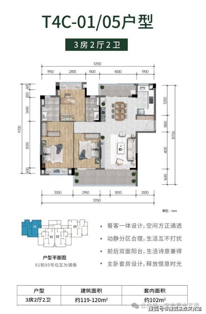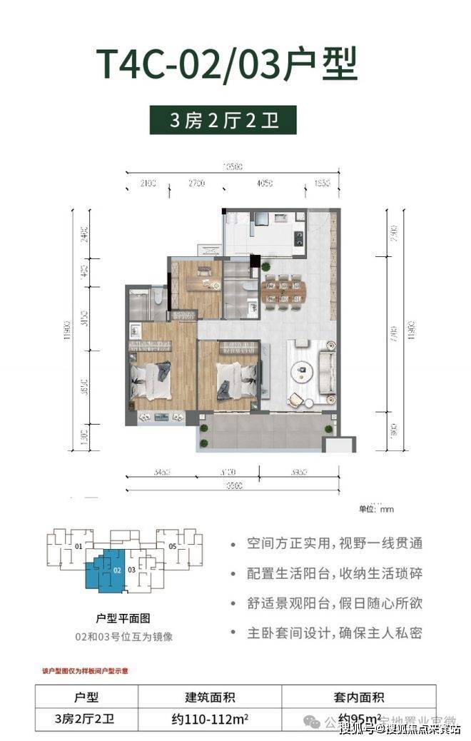 全明户型,方正实用、公摊低,大主卧、超大景观阳台设计