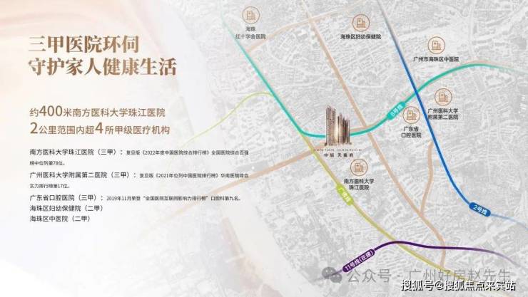 500米步行南方医科大学珠江医院,广州医科大学附属第二医院、广州市红十字会医院、广东省口腔医院等多家三甲医院保驾护航。