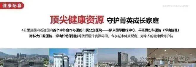4公里范围内有国内首个中外合作办医的市属公立医院——萨米国际医疗中心、平乐骨伤科医院(坪山院区)、南科大口腔医院、坪山妇幼保健院等优质医疗资源环伺。