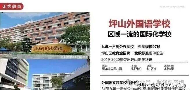 自带36班小学、18班幼儿园,周边还有坪山外国语学校、同心外国语学校、东部湾区实验学校、南方科技大学附属坪山学校、锦绣实验学校、深圳中学坪山创新学校等多所中小学。