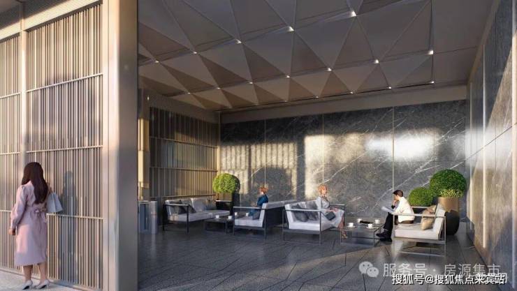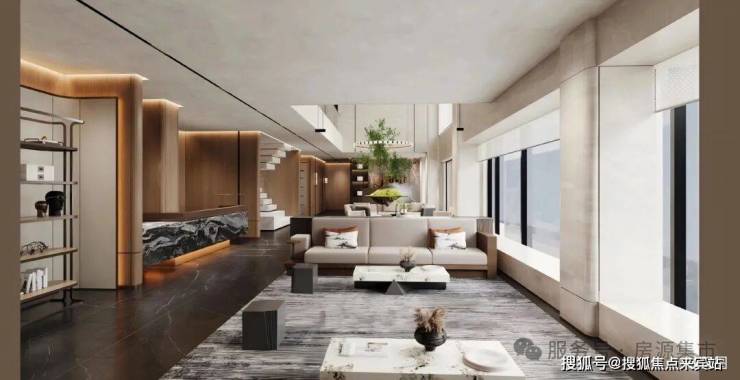 🔘星级车库:车库双大堂设计,大面积采用天然浅色石材,并于天然奢石加以点缀,光厅顶面采用金属构件,结合灯带,增加层次感,彰显项目高定品质。