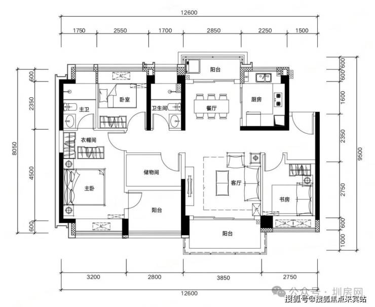 高清户型图电子档(标注尺寸+采光分析+公摊面积)