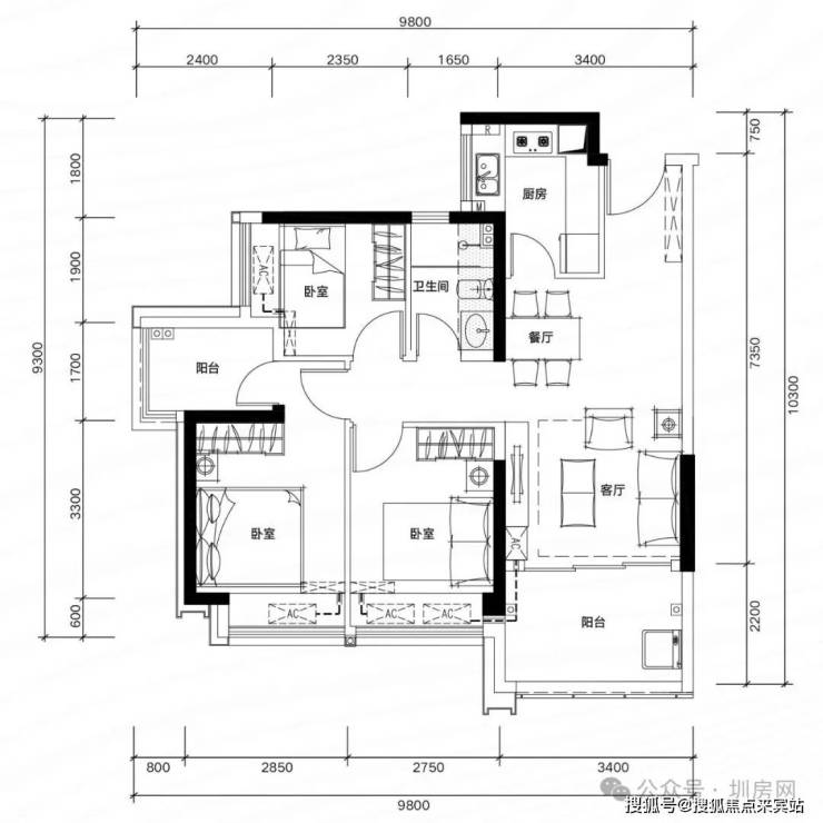 81㎡三房两厅两卫,空间利用极致,功能齐全。