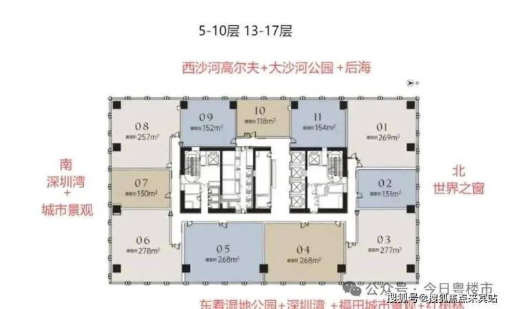 深圳湾超总壹号坐落于深圳湾超级总部基地的核心位置。这里是深圳未来发展 的战略高地,汇聚了全球顶尖的企业、高端人才和先进的科技资源,代表着深圳高端的产业 形态和前沿的发展趋势。项目周边交通便利,是湾区复合枢纽,实现海陆空一站接驳,六轨 六站交汇,擎画高效往来。